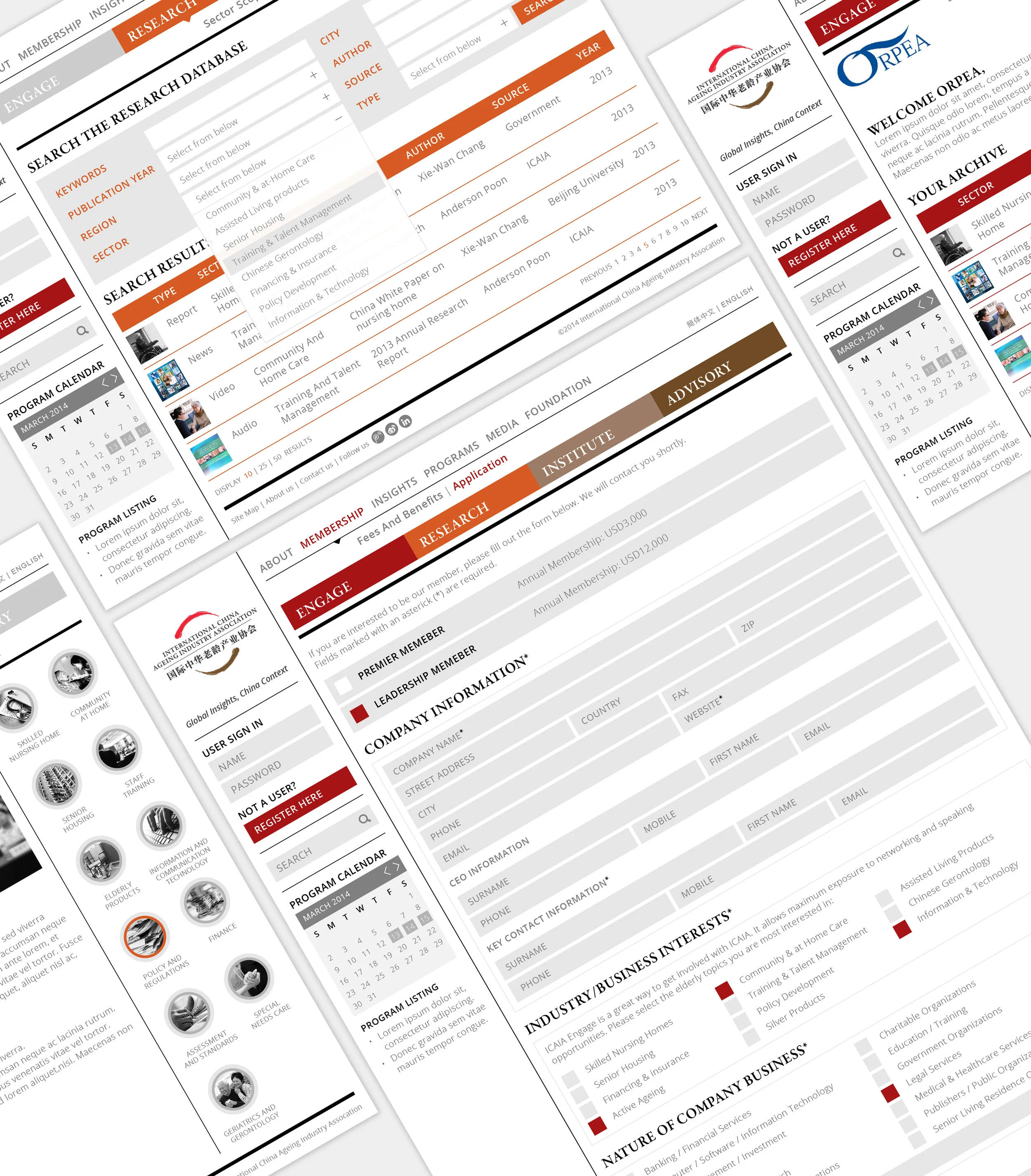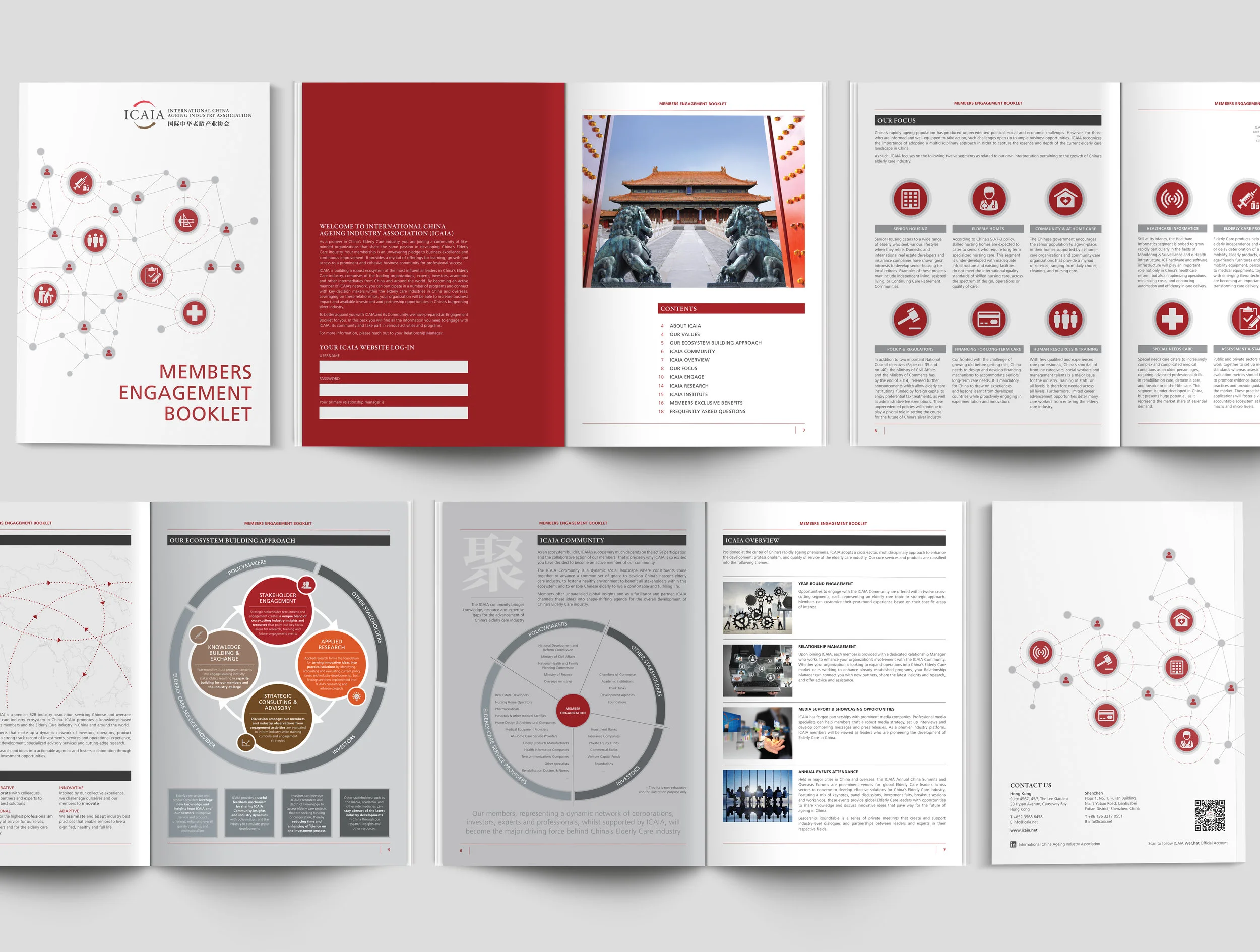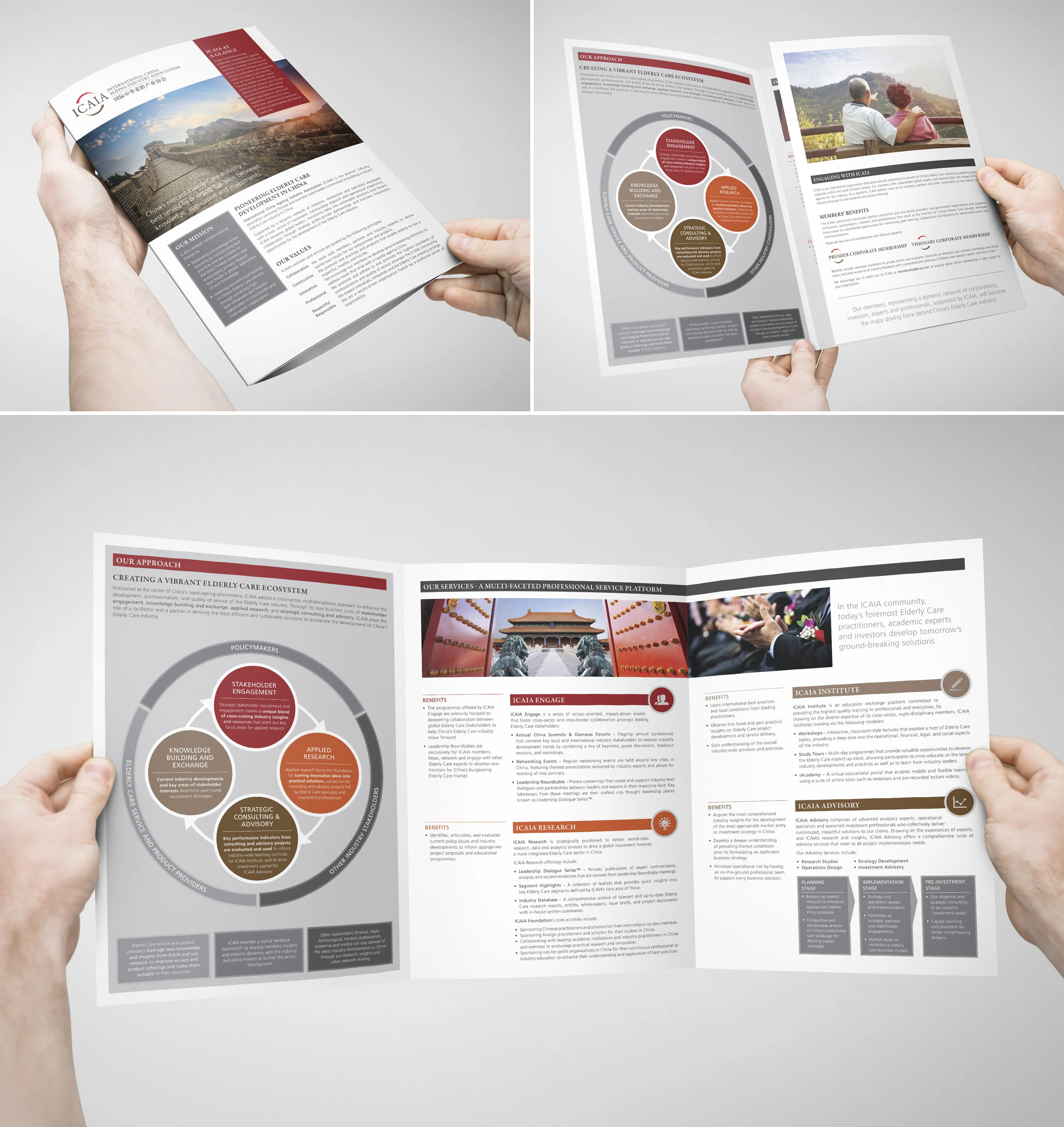 Branding, stationery, marketing collateral, and website design for International China Ageing Industry Association (ICAIA). ICAIA is an industry association servicing Chinese and overseas stakeholders committed to building a vibrant Elderly Care industry ecosystem in China. The association convenes global leaders, transforms research and ideas into actionable agendas and fosters collaboration through strategic public-private partnerships and business and investment opportunities.